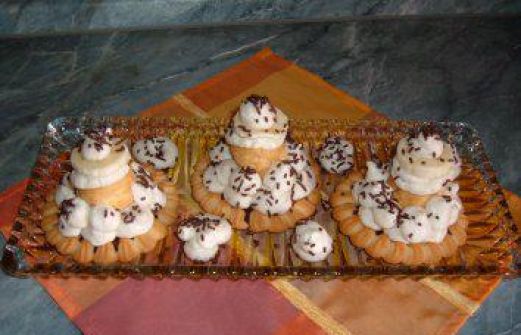 Zutaten für Personen Rezept mit Bild: Kuchen......Bananen - Törtchen......ohne backen Bild einstellen 4 Stück Mürbeteig - Torteletts 1 Banane 4 Stück Windbeutel.....Mini TK Schoko Eiswunder 200 ML Sahne [...]