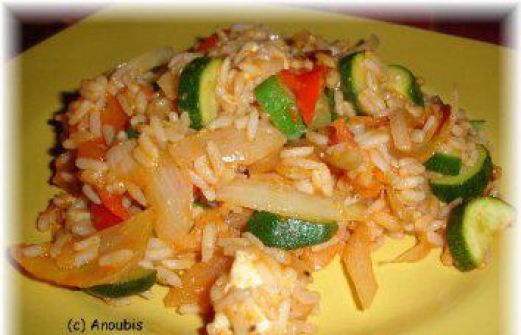 Zutaten für Personen Rezept mit Bild: Hauptgericht vegetarisch - Griechische Reispfanne Bild einstellen 250 g Reis 4 kleine Zucchini 4 mittelgrosse Tomaten 2 zwiebeln 1 rote Paprikaschote 100 g F [...]