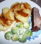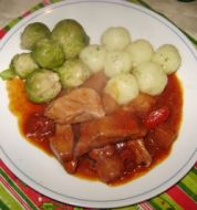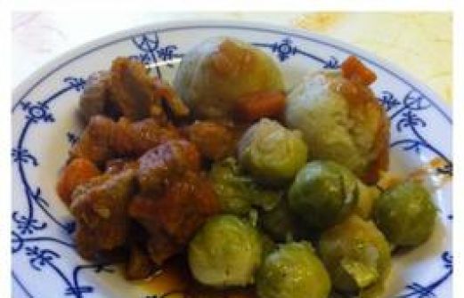 Zutaten für Personen Rezept mit Bild: Gulasch Rosenkohl und Knödel Bild einstellen 1 kg Schwein Gulasch (fe) frisch 1 kg Rosenkohl frisch 12 Stück Semmelknödel 3 Stück Möhren 3 Stück Zwiebel fr [...]