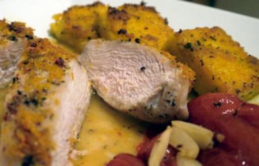 Zutaten für Personen Rezept mit Bild: Orangenhähnchen mit Polenta-Kräuter-Schnitten und Ofentomaten Bild einstellen Orangenhähnchen 2 Hähnchenbrüste 2 Orangen 1 Schalotte, fein gewürfelt 1 Knoblauc [...]