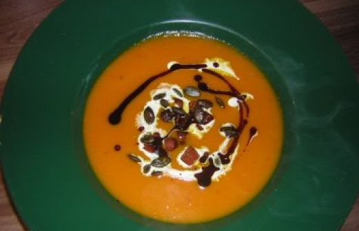 Zutaten für Personen Rezept mit Bild: Kürbissuppe Bild einstellen 1 Hokkaido-Kürbis, 1 - 1,2 kg 1 Zwiebel 1 EL Butter 750 g Gemüsebrühe Salz Pfeffer 4 Tiroler Kaminwurzen 2 EL Kürbiskerne [...]