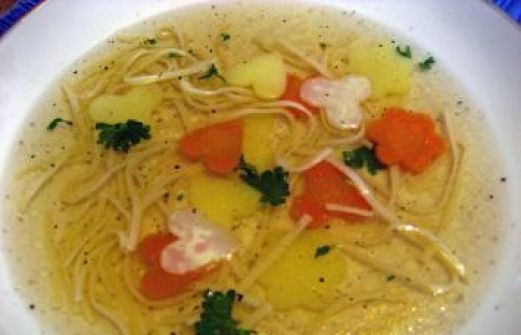 Zutaten für Personen Bild einstellen 1 Liter Hühnersuppe vom Suppenhuhn 2 mittelgrosse Möhren 1 Stück Sellerie - etwa 1/8 Knolle 2 mittelgrosse Kartoffeln 40 g feine Suppennudeln - Schnitt Salz etwas Petersilie gehac [...]