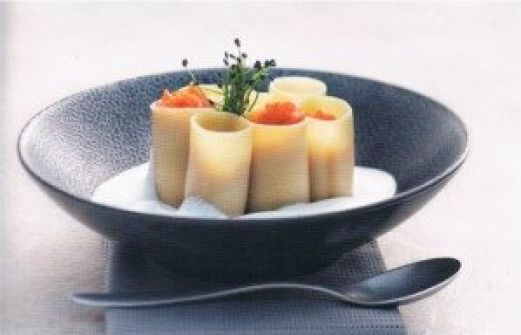 Zutaten für Personen Bild einstellen Zutaten - Cannelloni mit geschmolzenen Tomaten 50 Stück Cannelloni 80 ml Natives Oliven- Öl Extra Peloponnes 100 Gramm Schalotten in feine Würfel geschnitten 40 ml Grappa 500 Gramm Kir [...]