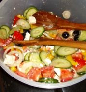Griechischer Bauernsalat Zutaten 1 kleine Salatgurke je 1 kleine rote und gelbe Paprikaschote 3-4 Tomaten 1 kleine weiße Zwiebel je 3-4 Petersilien- und Basilikumstängel 1 kleiner Kopfsalat 150 g Feta 2 EL Weißweinessig 3 EL Zitronensaft Salz Pfeffer 5 EL Olivenöl 1 TL [...]