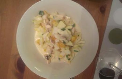 Zutaten für Personen Rezept mit Bild: Chicoreesalat pikant-fruchtig Bild einstellen 2 Stk. Chicoree frisch, mittelgross 1 Apfel / Pink Lady 100 gr. Champignons frisch 0.5 Dose Mandarinenspalten 1 EL Oliven [...]