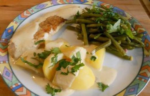 Zutaten für Personen Bild einstellen 2 Stk. Kabeljaufilet 1 Becher Sahne 1 Esslöffel Senf mittelscharf Salz, Pfeffer etwas Mehl 1 Stk. Butter zum braten Gemüse 300 gr. grüne Bohnen 1 Päckchen Katenschinken f [...]