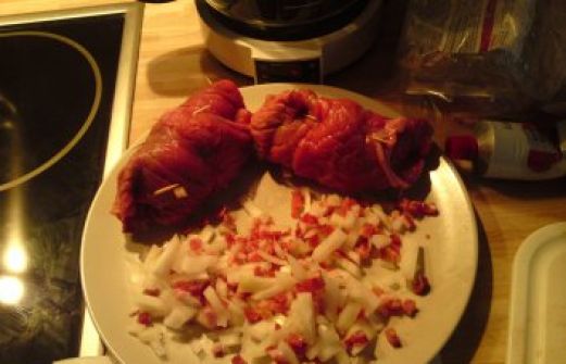 Zutaten für Personen Rezept mit Bild: Rinderrouladen Bild einstellen 3 Stk. Rinderrouladen 3 Stk. Gewürzgurken 5 Stk. Zwiebeln 3 Stk. Speck durchwachsen 200 ml Rotwein herb Senf, Salz, Pfeffer, Papr [...]