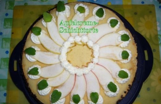Zutaten für Personen Rezept mit Bild: Torten: Apfelcreme-Schicht-Torte Bild einstellen 250 gr. Butter 200 gr. Zucker 1 Päckchen Vanillezucker 5 Eier Freiland 260 gr. Mehl 2 TL Backpulver 50 [...]