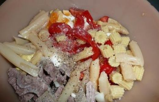 Zutaten für Personen Rezept mit Bild: Rindfleischsalat Bild einstellen 500 g Rindfleisch 2 Stk. Eier hartgekocht 1 Stk. Zwiebel gewürfelt 100 g Datteltomaten 1 Glas Maiskolben klein 1 Glas Spargel [...]