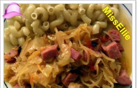 Zutaten für Personen Rezept mit Bild: ~ Hauptgericht ~ Sauerkrautpfanne Bild einstellen 2 EL Olivenöl 1 Zwiebel weiß 200 g Klosterschinken 250 ml Gemüsebrühe heiß 1 EL Ajvar 240 g Sauerkraut Z [...]