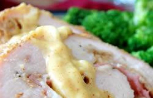 Portionen : 4 4 Hähnchenbrusthälften ohne Haut und Knochen 1/4 TL Salz 1/8 TL Pfeffer 6 Scheiben Emmentaler 4 Scheiben gekochter Schinken Semmelbrösel 1/2 TL Kräutersalz