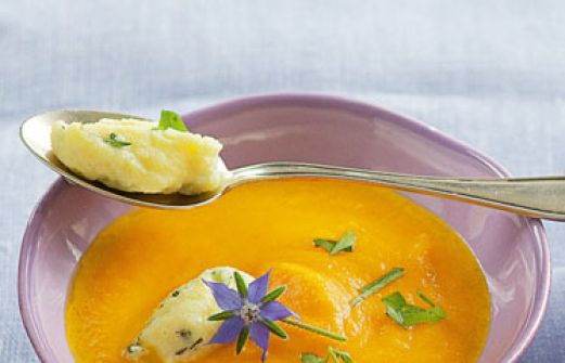 Möhrensuppe mit Kräuterklößchen Zutaten 400 g Möhren 150 g fest kochende Kartoffeln 1 Zwiebel 1 EL Butter 1 EL Honig 750 ml Gemüsebrühe Salz schwarzer Pfeffer aus der Mühle 1-2 EL gemischte gehackte Kräuter zum Bestreuen 200 ml fettarme Milch (1,5 % Fett) 2 TL Butter 50 [...]