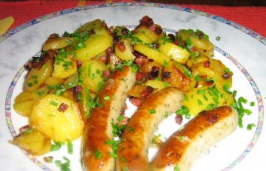 Zutaten für Personen Rezept mit Bild: Nürnberger Würstchen an Bratkartoffeln Bild einstellen 150 g Nürnberger Würstchen 500 g Kartoffel geschält frisch 125 g Speckwürfel 1 Stück Zwiebel gehackt 50 g B [...]