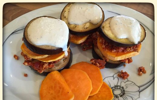 Portionen: 2 Zutaten: 300 g Süsskartoffeln 300 g Auberginen 1 Zwiebel 2 Knoblauchzehen 4 EL Olivenöl 250 g Tofu, natur 130 g Tomatenmark 1 TL Agavendicksaft oder Ahornsirup 30 ml Rotwein 1/2 TL Salz schwarzer Pfeffer Cashew-Creme: 30 g Cashewmus (ungesüßt!) etw [...]