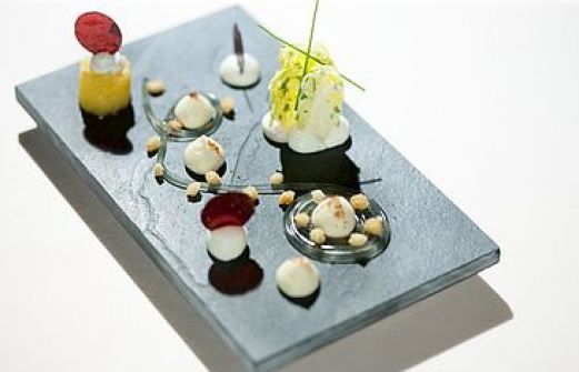 für 2 Personen Schinkenspaghetti: 400 g Kochschinken 1 l Geflügelfond Pfefferkörner , Lorbeer, Thymian, Meersalz Ananasmoussee: 300 g Ananaspüree 3 Blatt Gelatine 100 g geschlagene Sahne Frischkäsemousse: 250 g Frischkäse 3 EL Joghurt 3 Blatt Gelatine Salz und Pfeffer 120 g geschlagene S [...]