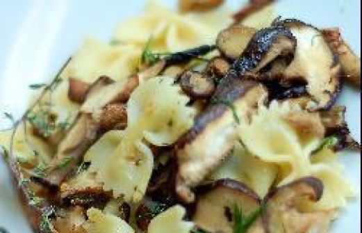 Portionen : 2 200 g Farfalle 1 Zwiebel 200 g Shiitakepilze 3 EL Butter 2 Knoblauchzehen Salz Pfeffer
