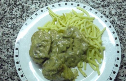 Menge Zutat 1 kg Putenfilet 1 große Zwiebel 200 g Champignons in Scheiben (TK) 50 g Kräuterfrischkäse 300 ml Sahne 200 ml Wasser [...]