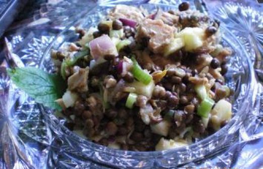 Zutaten für Personen Rezept mit Bild: Linsensalat mit Thunfisch Bild einstellen 1 Ds. sehr kleine Linsen, Abtropfgewicht 530 g 200 g Thunfisch im eigenen Saft 1 Stange Lauchzwiebel 2 Zehen Knoblauch 1 Tl B [...]