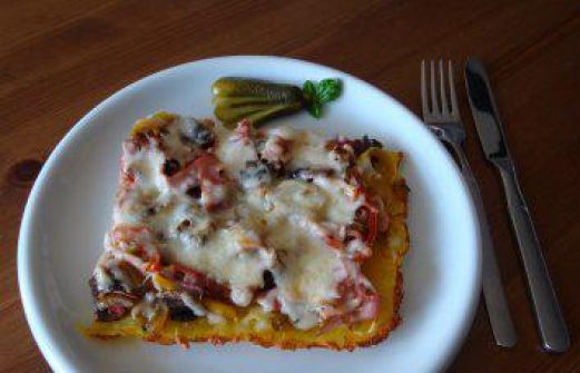 Zutaten für Personen Rezept mit Bild: Kartoffelpizza Bild einstellen 1000 gr. Reibekuchenteig (Fertigprodukt) 1 Stück Gemüsezwiebel 2 Stück Knoblauchzehen gehackt 300 gr. Schinken gekocht ohne Fettrand [...]