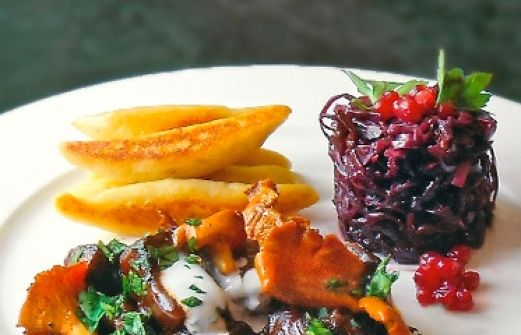 Ragout de Chevreuil mit Pfifferlingen an Preiselbeerrotkohl und gebratenen Schupfnudeln Zutaten RAGOUT DE CHEVREUIL: 600 Gramm pariertes Reh aus der Keule 70 Gramm durchwachsener, kräftiger Räucherspeck, in Streifen geschnitten 300 ml trockener Spätburgunder 3 EL Cognac oder guter Wei [...]