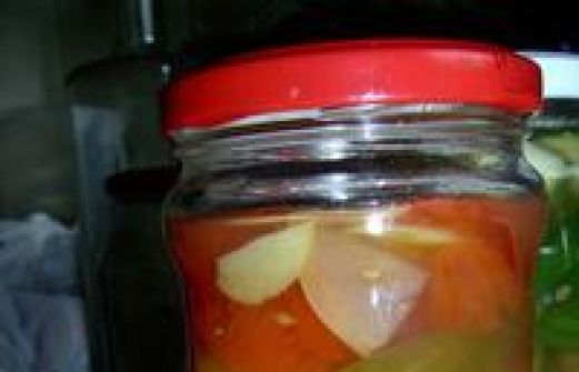Zutaten für Personen Bild einstellen 200 g Gemüsegurken oder Minigurken, in Sticks geschnitten 50 g Cherrytomaten, geviertelt 30 g Apfel, in Stücke geschnitten 0.5 l Wasser, heiß 2 EL Rotweinessig 5%, Säüreanteil, ggf. mit wei [...]