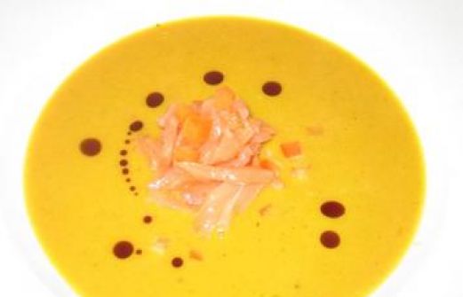 Zutaten für Personen Bild einstellen 800 g Kürbis, geputzt 500 g 1 weiße Zwiebel 1 Knoblauchzehe 1 Möhre 1 Stange Staudensellerie 1 rote Paprika 1 EL Butter 1 EL Ingwer, gerieben Salz, Pfeffer, Chili, Parika e [...]