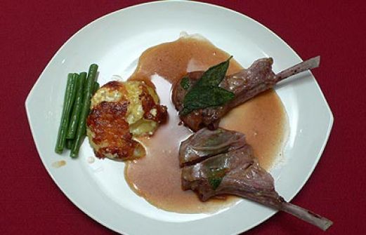 Zutaten für Personen Bild einstellen 10 Lammkoteletts 10 Salbeiblätter 10 Scheiben Parmaschinken Olivenöl 2 frische Zweige Thymian und Rosmarin 1 Knoblauchzehe Salz Pfeffer 2 kg Lammknochen 1 Stange Lauc [...]