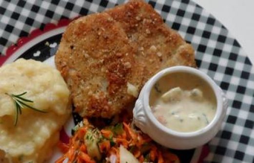 Zutaten für Personen Rezept mit Bild: Knusprige Kohlrabischnitzel mit Apfel-Joghurt-Dip, Gurken-Birnen-Salat und Kartoffelpüree Bild einstellen 1 großer Kohlrabi Für die Panade: 4 EL Dinkelmehl 2 [...]