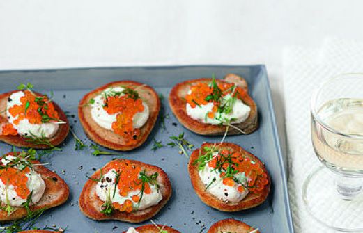 Blini mit Forellenkaviar Zutaten 100 g Buchweizenmehl 100 g Weizenmehl (Type 405) 25 g frische Hefe 1 TL Zucker 1/4 l Milch 4 Eier (M) 2 EL Butter Meersalz 200 g Schmand 100 g Naturjoghurt (3,5 % Fett) 1–2 EL Sahnemeerrettich Pfeffer 4–5 EL Butterschmalz zum Braten 50 g [...]