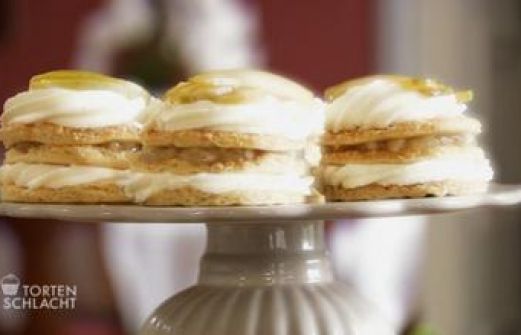 Zutaten für Personen Bild einstellen Biskuit: 6 Stück Eier 1 TL Vanille-Extrakt 2 TL Backpulver 6 EL Rohrzucker 6 EL Mehl 6 EL Speisestärke 80 g Zucker 10 g Mandeln gehackt Apfelmasse: 1 Stück Vanille [...]