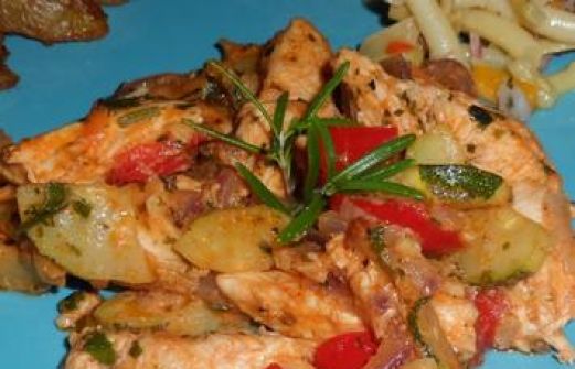 Zutaten für Personen Rezept mit Bild: Mediterrane Pesto-Hähnchen-Pfanne mit Paprika und Zucchini Bild einstellen Fleisch: 400 g Hähnchenbrustfilet Marinade: 2 Schalotten, fein gewürfelt 4 EL Pe [...]
