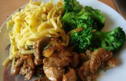 Zutaten für Personen Rezept mit Bild: Geschnetzeltes vom Filet mit Broccoligemüse Bild einstellen 300 Gramm Schweinefiletkopf 1 Zwiebel 1 Knoblauchzehe Salz grob Knoblauchpfeffer Paprikapulver [...]