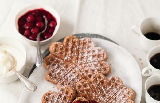 Sacherwaffeln mit Kirschen Zutaten 1 Glas Schattenmorellen (720 ml) 1 Vanilleschote 1 Zimtstange 2 EL Zucker 1 gehäufter EL Speisestärke 250 g Sahne 150 g weiche Butter 150 g Zucker 1 Prise Salz 4 Tranche Bittermandelaroma 3 Eier (M) 100 g Weizenmehl (Type 405) 50 g S [...]