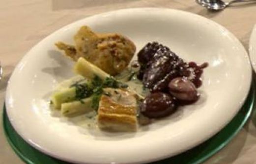Zutaten für Personen Bild einstellen Coq au vin 1 Stück Maispoularde 2 Stück Maispoulardenbrust 3 EL Stärke 2 EL Mehl 50 ml Weißwein 1 Prise Salz und Pfeffer 0.5 Bund Thymian 6 Stück Champignons 30 g Schin [...]