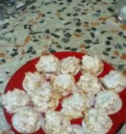Menge Zutat 1 TL Speisestärke 2 TL abgeriebene Zitronenschale 250 g Kokosraspeln 3 EL Zitronensaft 70 g Puderzucker 70 g Zucker [...]