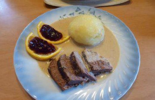 Zutaten für Personen Rezept mit Bild: Rehkeule mit Rahmsoße Bild einstellen 1 Rehkeule Lorbeerblätter Wacholderbeeren Nelken 1 Becher saure Sahne Brühwürfel 1 Becher Schmand 2 Becher Cre [...]