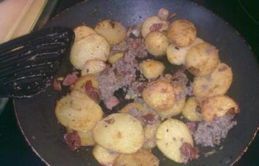 Zutaten für Personen Rezept mit Bild: Dreierlei Kartoffelgröstl - nichts für Vegetarier!!! Bild einstellen 6 gekochte Kartoffeln in Scheiben geschnitten 1 Zwiebel gewürfelt 3 Scheiben Speck gewürfelt 1 Stück [...]