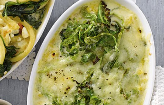 Wirsing-Polenta-Gratin Zutaten 800 ml Gemüsebrühe 1 EL Butter 200 g Polenta 1 kleiner Wirsing (ca. 600 g) 1 Zwiebel 2 EL Öl 150 g Bergkäse Salz Pfeffer Currypulver 100 g Sahne frisch geriebene Muskatnuss 800 ml Gemüsebrühe , 1 EL Butter , 200 g Po [...]
