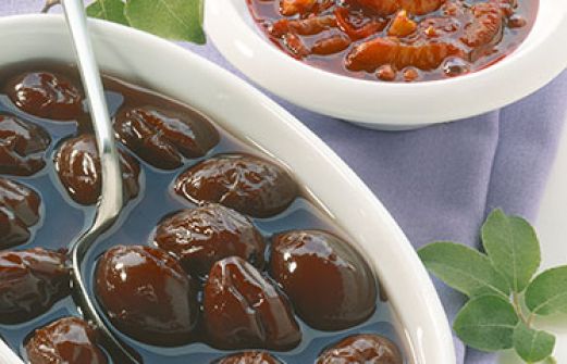 Rotwein-Zwetschgen Zutaten 1 kg Zwetschgen 500 ml Rotwein 125 ml Rotweinessig 400 g brauner Rohrzucker 1 Zimtstange 1 Vanilleschote 1 getrocknete Chilischote 1 kg Zwetschgen , 500 ml Rotwein , 125 ml Rotweinessig , 400 g brauner Rohrzucker , 1 Z [...]