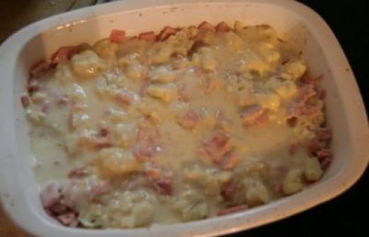 Zutaten für Personen Rezept mit Bild: Blumenkohl-Schinken-Auflauf Bild einstellen 1 Stk. Blumenkohl 150 gr gekochter Schinken 2 Ecken Schmelzkäse je 62,5 gr. 20 gr Butter 2 EL Mehl, Salz, Pfeffer, Muska [...]
