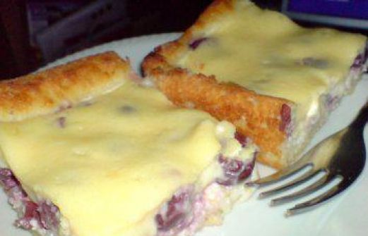 Zutaten für Personen Rezept mit Bild: Kirschkuchen mit Eierschecke Bild einstellen Falscher Hefeteig: 300 g Mehl 250 g Quark 1 Tasse Zucker 1 Tasse Öl 1 Ei 1 Päckchen Backpul [...]