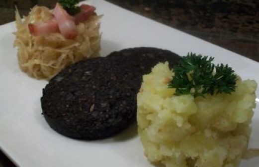 Zutaten für Personen Rezept mit Bild: westfälischer Blutkuchen, gestovte Kartoffeln und geschmortes Fasskraut Bild einstellen 400 Gramm Blutkuchen aus der bäuerlichen Hausschlachtung, in Scheiben 500 Gramm frisc [...]