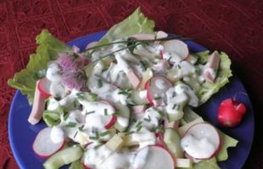 Zutaten für Personen Rezept mit Bild: Bunter Käse - Wurst - Salat ... Bild einstellen 50 Gramm Fleischwurst 50 Gramm Emmentaler 60 Gramm Salatgurke 4 große Radieschen frisch 2 Esslöffel Joghurt Z [...]
