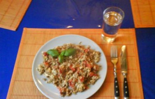 Zutaten für Personen Rezept mit Bild: Gemüse: Grünkernpfanne mit Tomaten Bild einstellen 1 Tasse gekochter Grünkern 3 Partytomaten 2 Eier Rapsöl zum Anbraten Knoblauch aus der Knoblauchmühle Kori [...]
