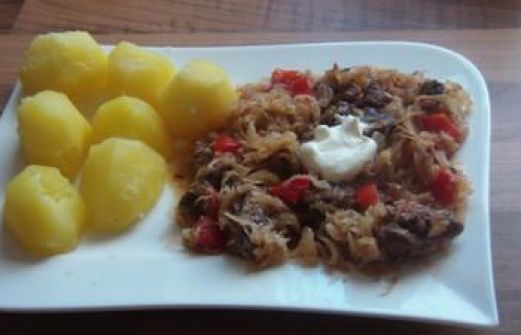 Zutaten für Personen Rezept mit Bild: Szegediner Gulasch Bild einstellen 1 Kg Rindergulasch durchwachsen 800 gr. Sauerkraut Konserve 400 gr. rote Paprikaschoten 2 unbehandelte Zitronen Salz,30 gr.M [...]
