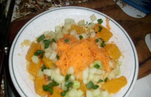 Zutaten für Personen Bild einstellen 100 Couscous, Instant, nach Rezept erstellen 2 Orangen 3 feine Gurkenwürfel 2 mittlere Möhren 1 Frühlingszwiebel 50 Butter Himbeerviaigrette nach Rezept in meinem KB [...]
