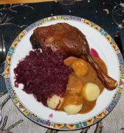 Zutaten für Personen Rezept mit Bild: Entenkeulen mit Möhren-Mango-Sauce Bild einstellen 2 Entenkeulen TK 4 mittelgr. Möhren 0.5 mittelgr. Mango frisch 1 ½ Eßl. Creme legere Salz, Pfeffer, Papr [...]