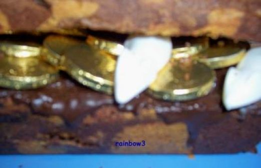 Zutaten für Personen Rezept mit Bild: Backen: Schatzkiste Bild einstellen 1 Marmorkuchen aus Rührmasse ... RZ in meinem KB 1 Päckchen Schokoladenguss Kaubonbon- oder Schokoladen-Geld Schaummäuse [...]
