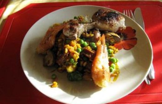 Zutaten für Personen Rezept mit Bild: Paella Bild einstellen 600 Gramm Hähnchen Unterschenkel 250 Gramm Meeresfrüchte tiefgekühlt unbehandelt 250 Gramm Champignons braun 2 Zwiebel frisch 200 Gra [...]