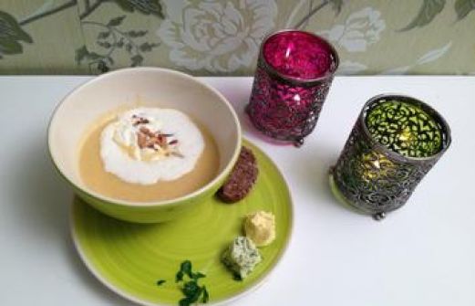 Zutaten für Personen Bild einstellen 500 g Pastinake frisch 2 Stk. Möhren 1 Stk. Porree frisch 1 Liter Gemüsebrühe 1 EL Öl 2 Stk. Bio-Orange 2 EL Frischkäse 2 EL Sahne 4 EL Pinienkerne 2 Stk. Schwarzbrot Sc [...]